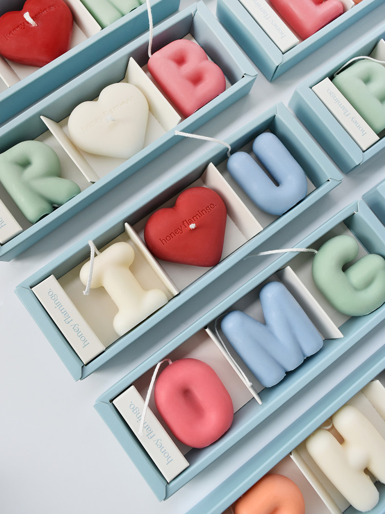 This is an alphabet candle set that allows you to choose any 3 letters from A to Z to create your own personalized combination.